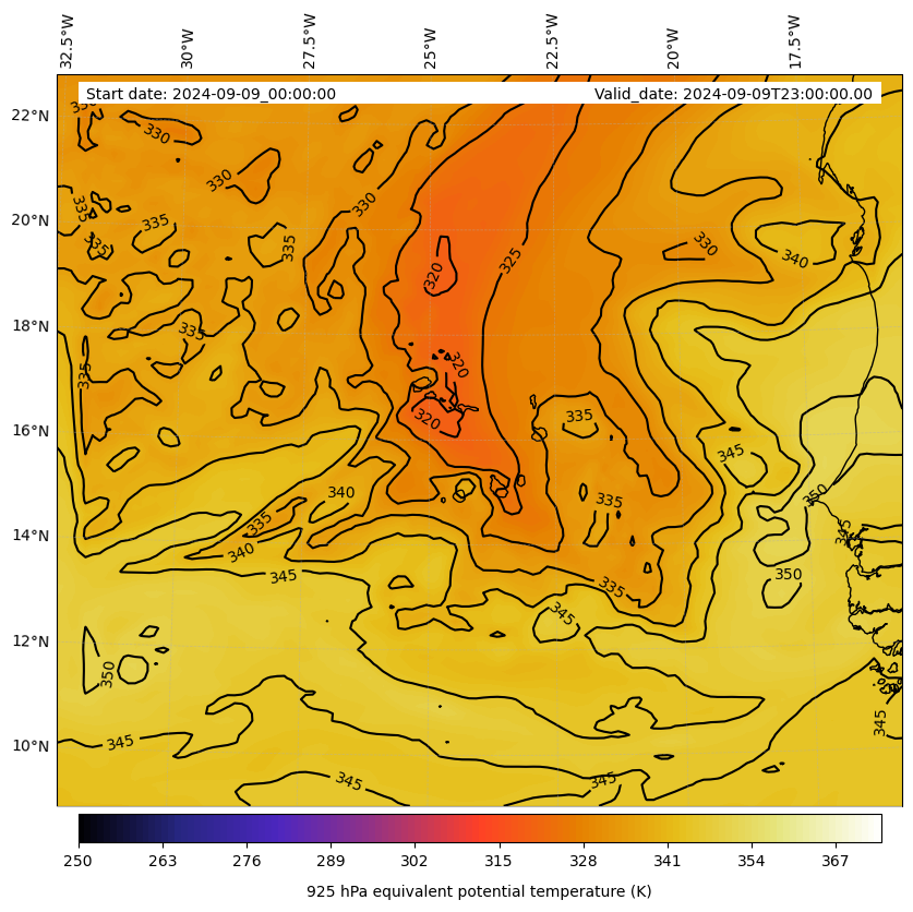 - Equivalent Potential Temperature (K)