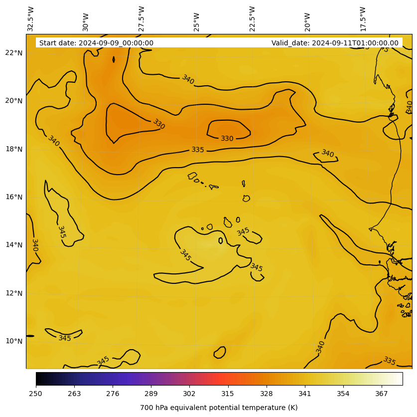 - Equivalent Potential Temperature (K)
