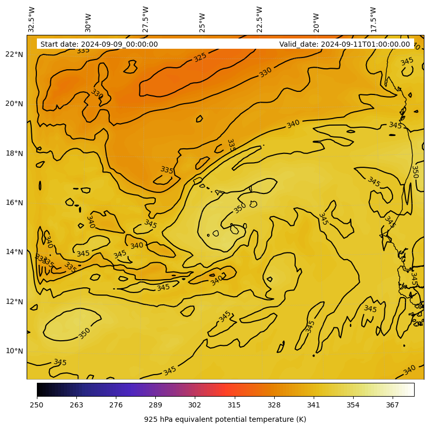 - Equivalent Potential Temperature (K)