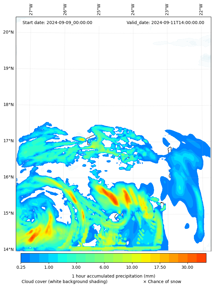 - Snow mixing ratio (g kg¯¹)