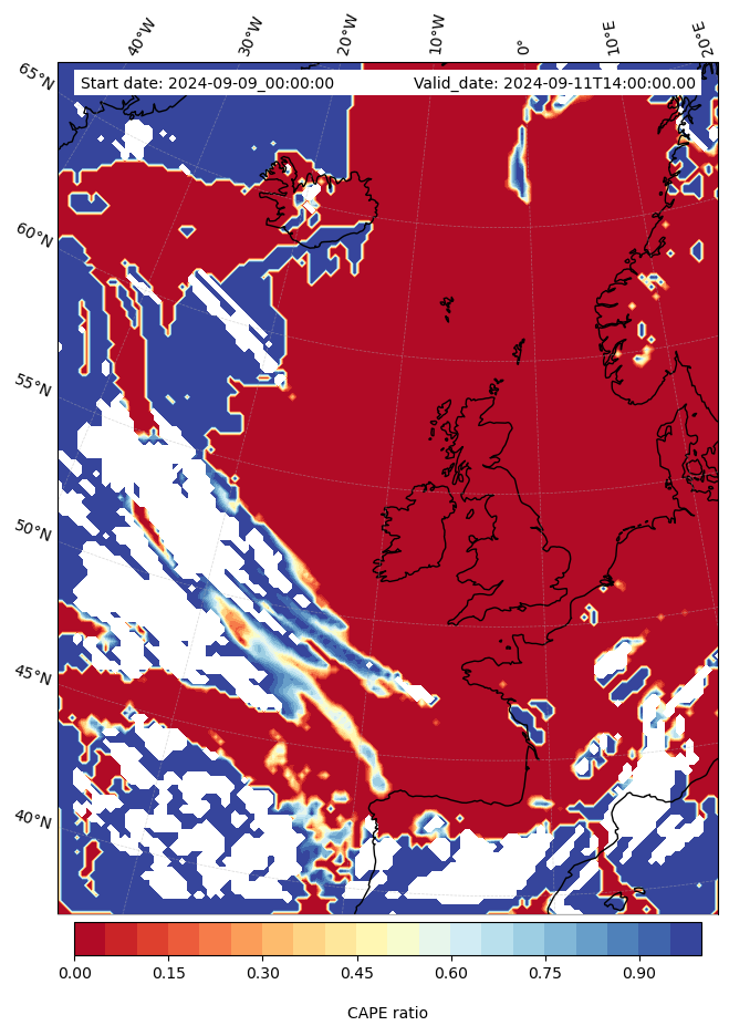 - Maximum CAPE (J/Kg)