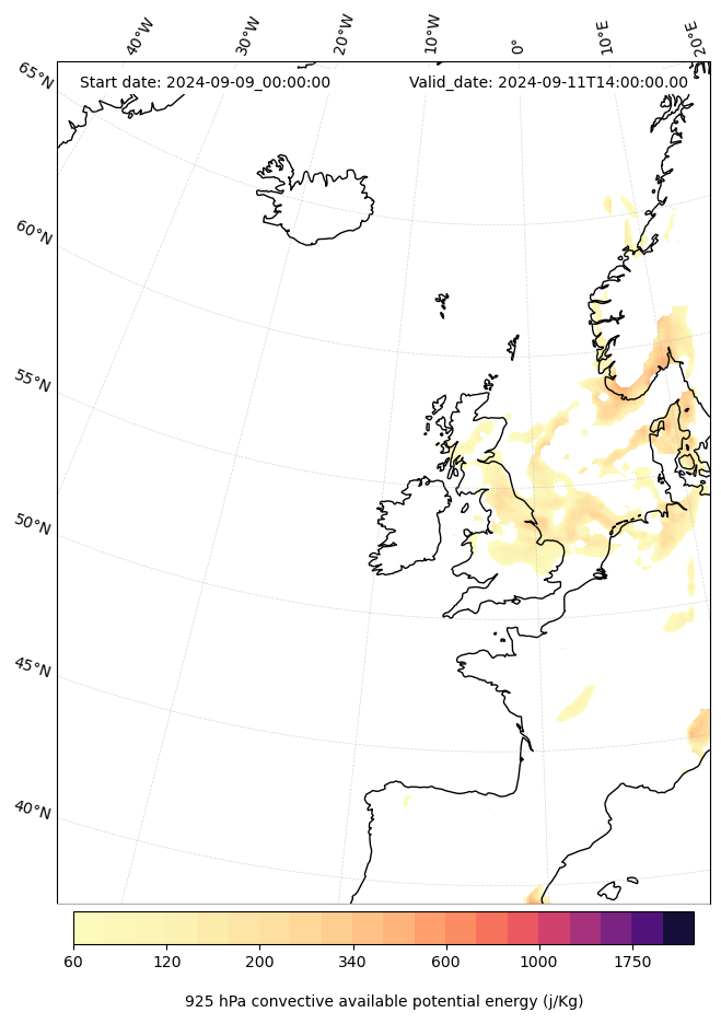 - Maximum CAPE (J/Kg)