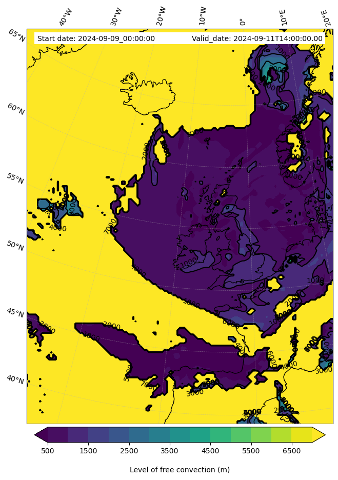 • Level of free convection (m)