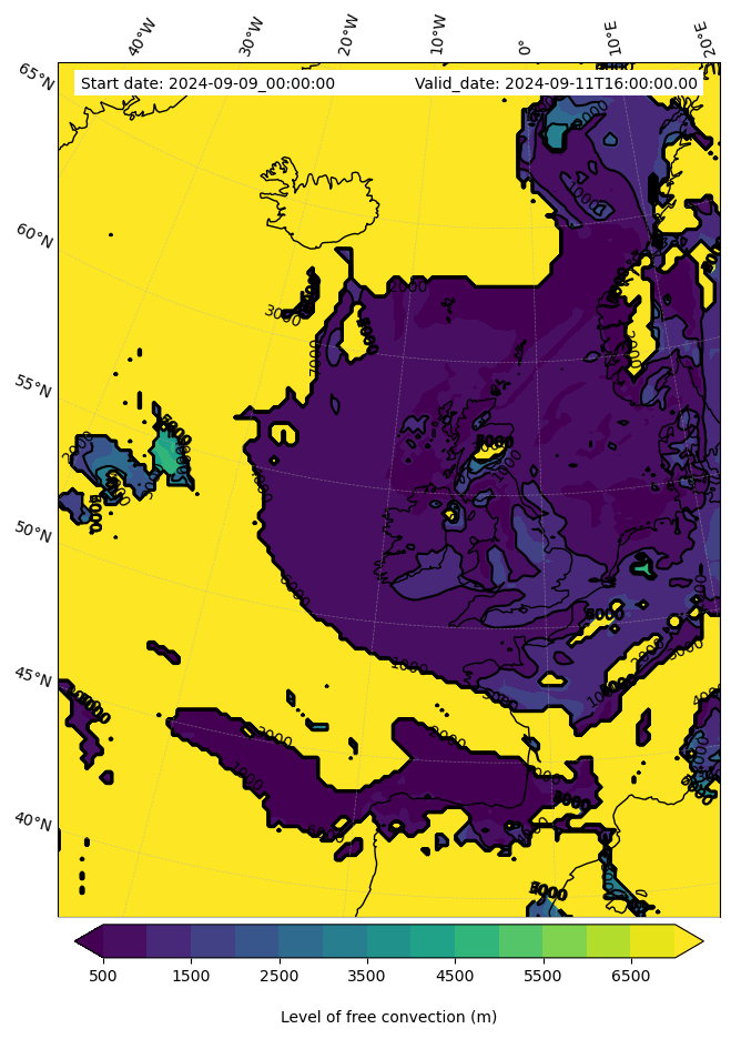 • Level of free convection (m)