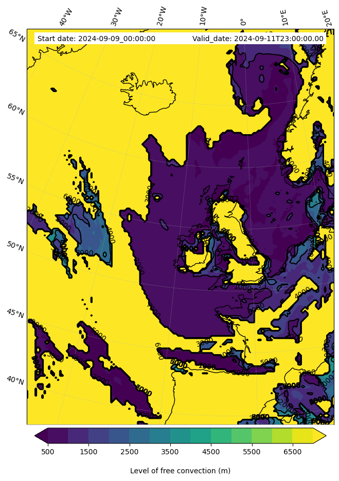 - Level of free convection (m)