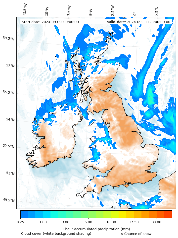 - Snow mixing ratio (g kg¯¹)