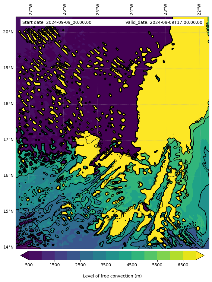 • Level of free convection (m)