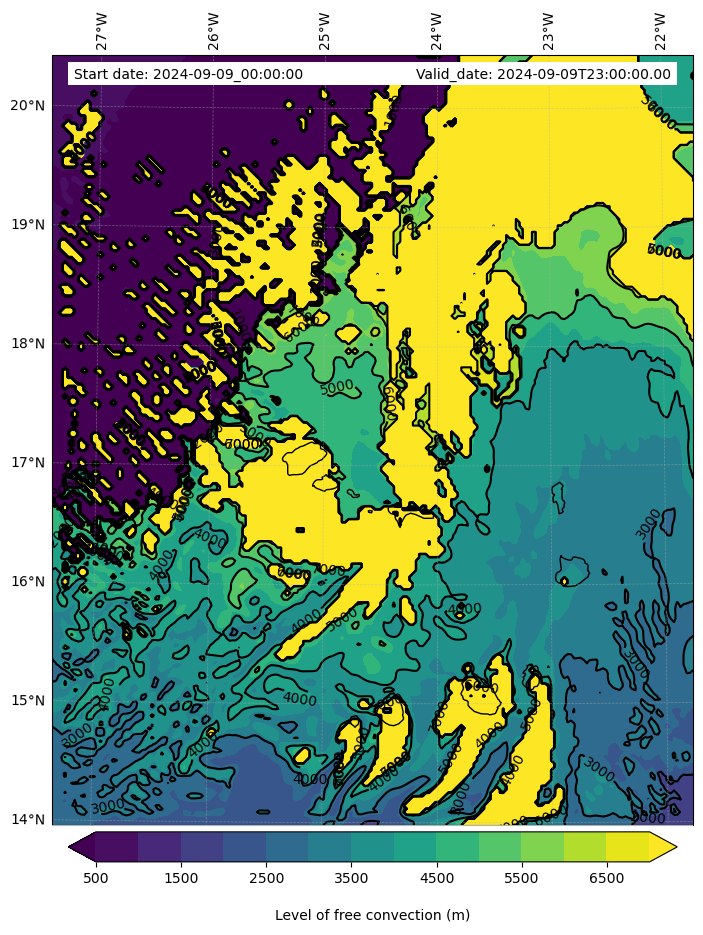 - Level of free convection (m)