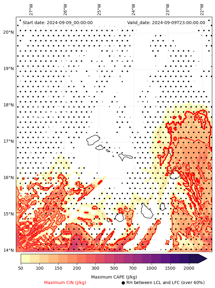 - Maximum CAPE (J/Kg)