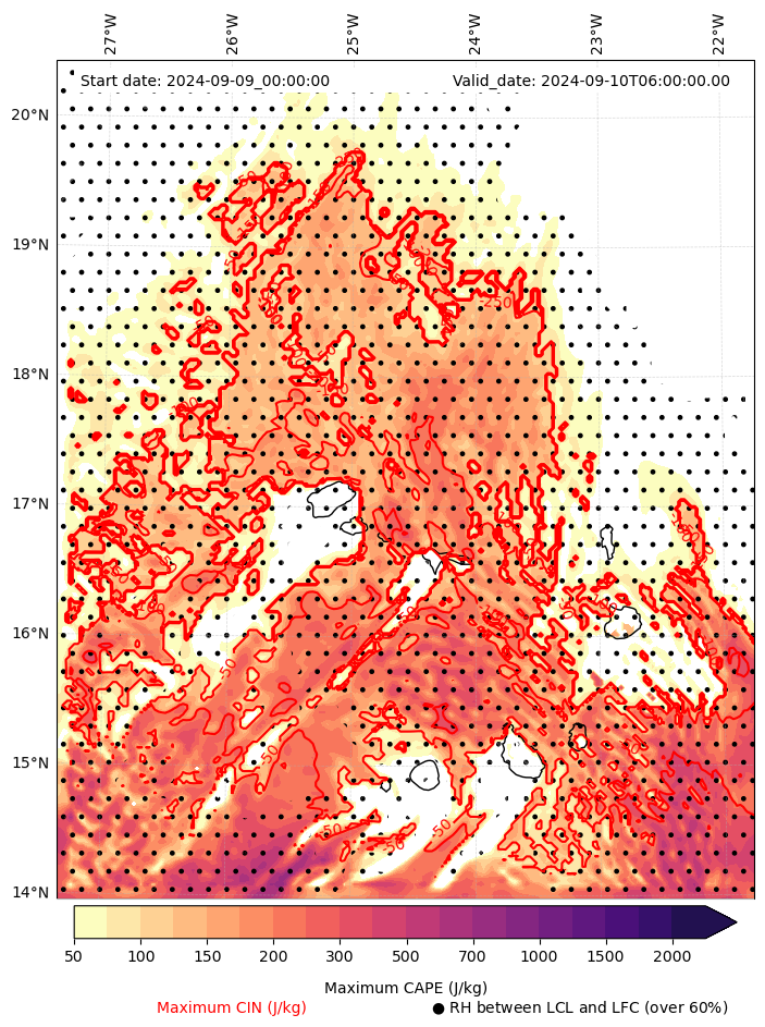 • Maximum CAPE (J/Kg)