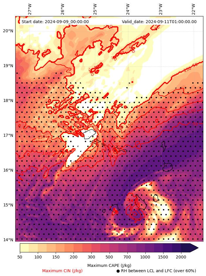 • Maximum CAPE (J/Kg)