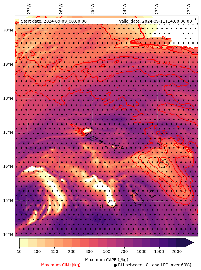 - Maximum CAPE (J/Kg)