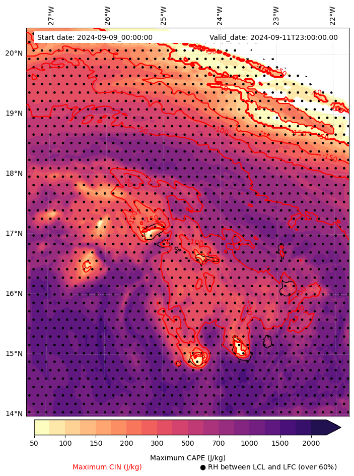 - Maximum CAPE (J/Kg)