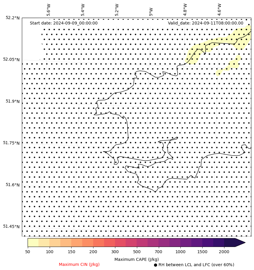 • Maximum CAPE (J/Kg)