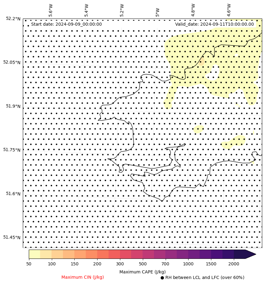 • Maximum CAPE (J/Kg)