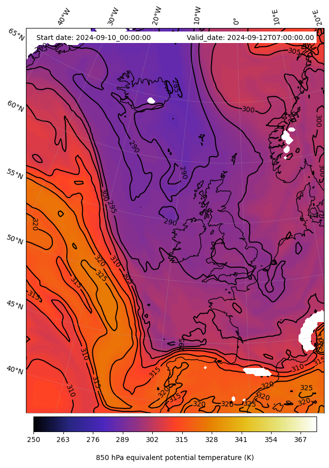 - Equivalent Potential Temperature (K)
