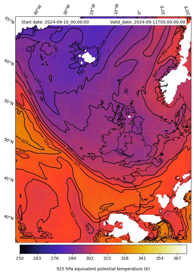 - Equivalent Potential Temperature (K)
