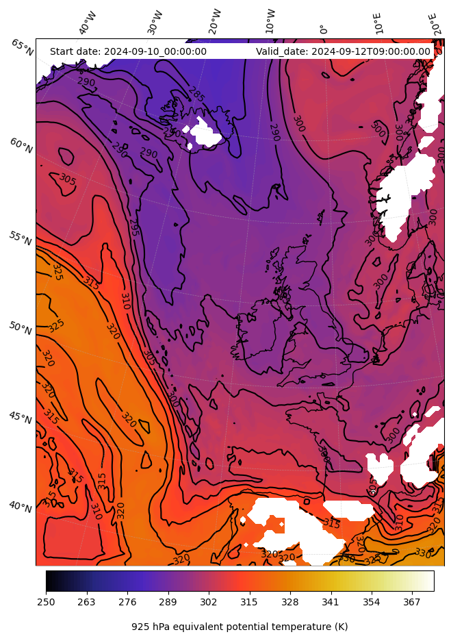 - Equivalent Potential Temperature (K)