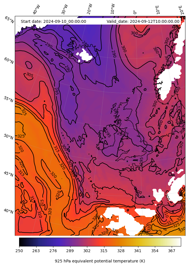 - Equivalent Potential Temperature (K)