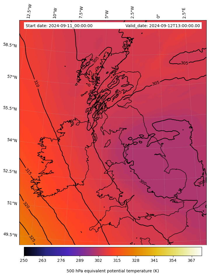 - Equivalent Potential Temperature (K)