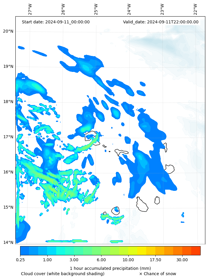 - Snow mixing ratio (g kg¯¹)