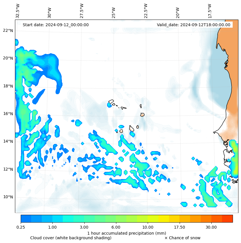 - Snow mixing ratio (g kg¯¹)