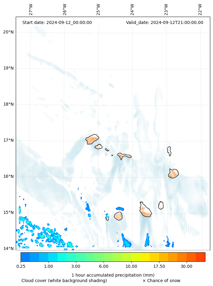 - Snow mixing ratio (g kg¯¹)