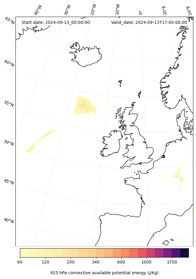 - Maximum CAPE (J/Kg)
