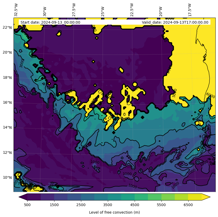 - Level of free convection (m)