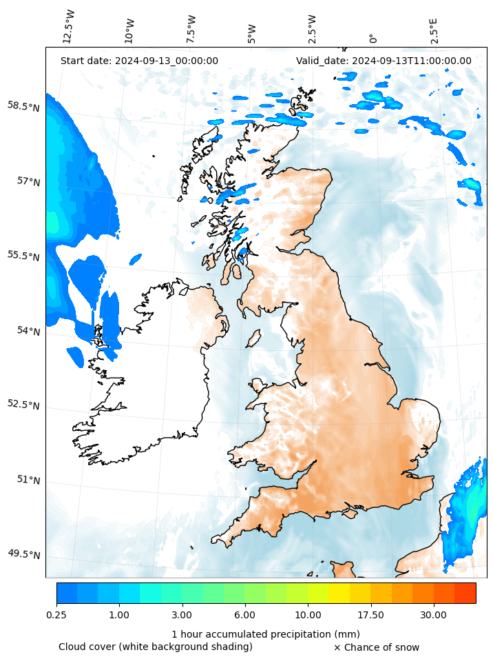 - Snow mixing ratio (g kg¯¹)