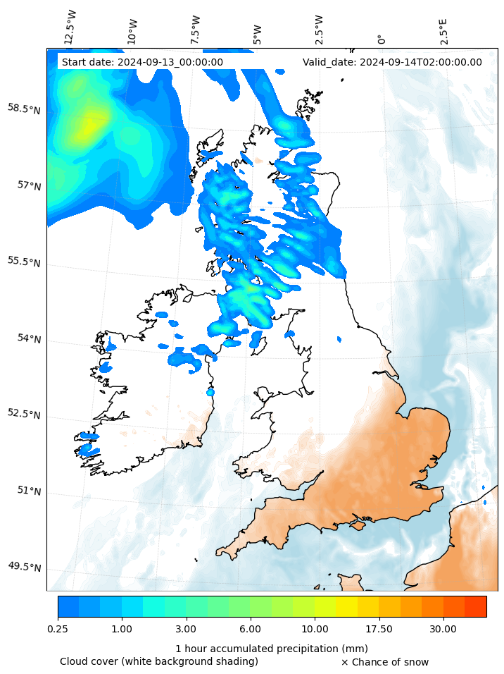 - Snow mixing ratio (g kg¯¹)
