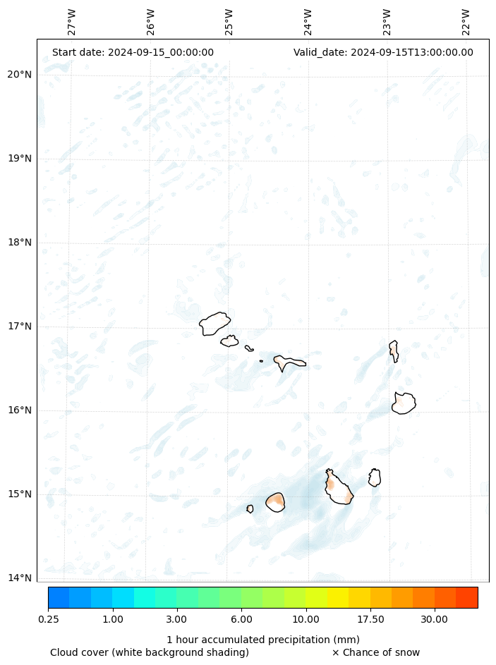 - Snow mixing ratio (g kg¯¹)