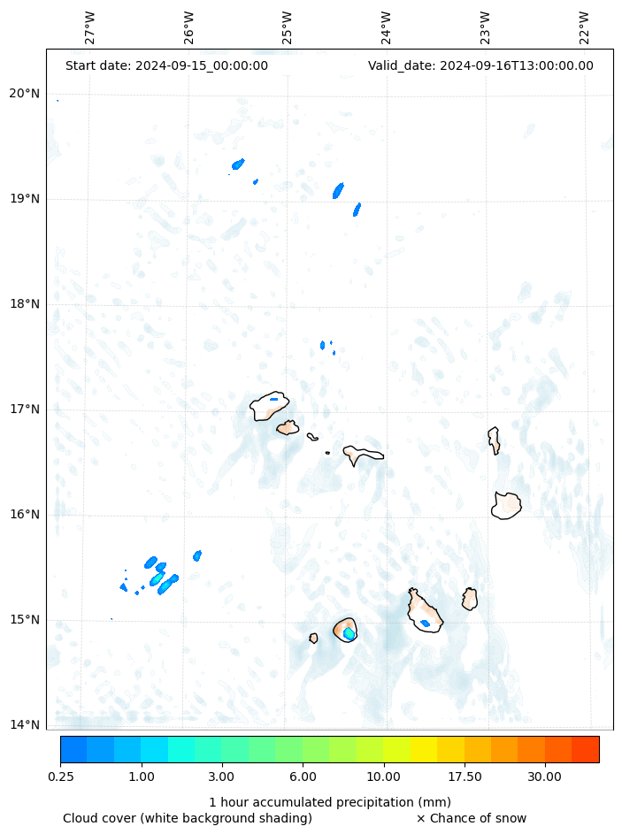 - Snow mixing ratio (g kg¯¹)