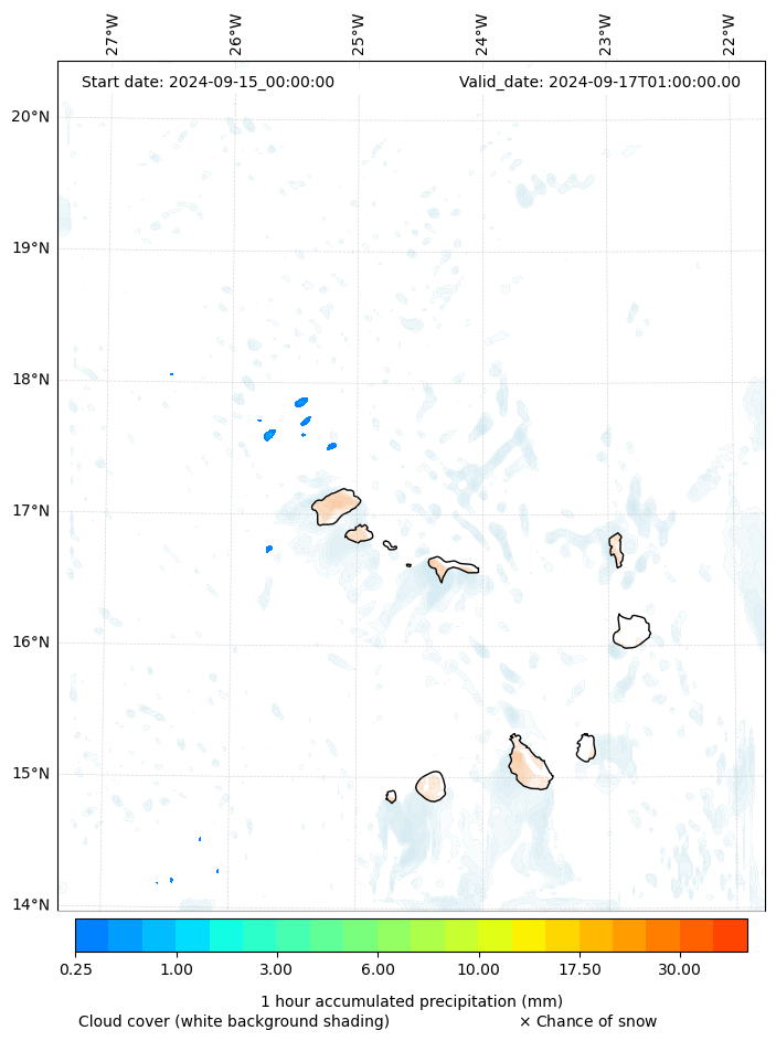 - Snow mixing ratio (g kg¯¹)