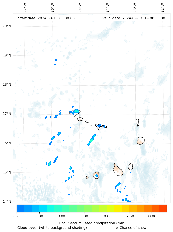 - Snow mixing ratio (g kg¯¹)