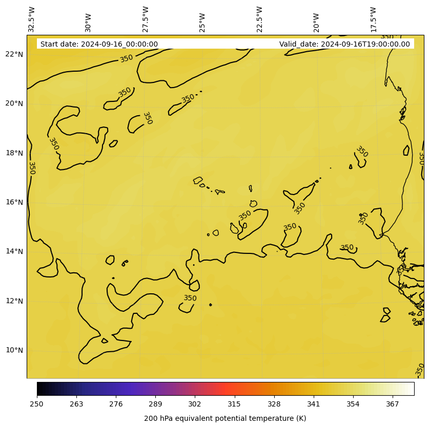 - Equivalent Potential Temperature (K)- 300 hPa