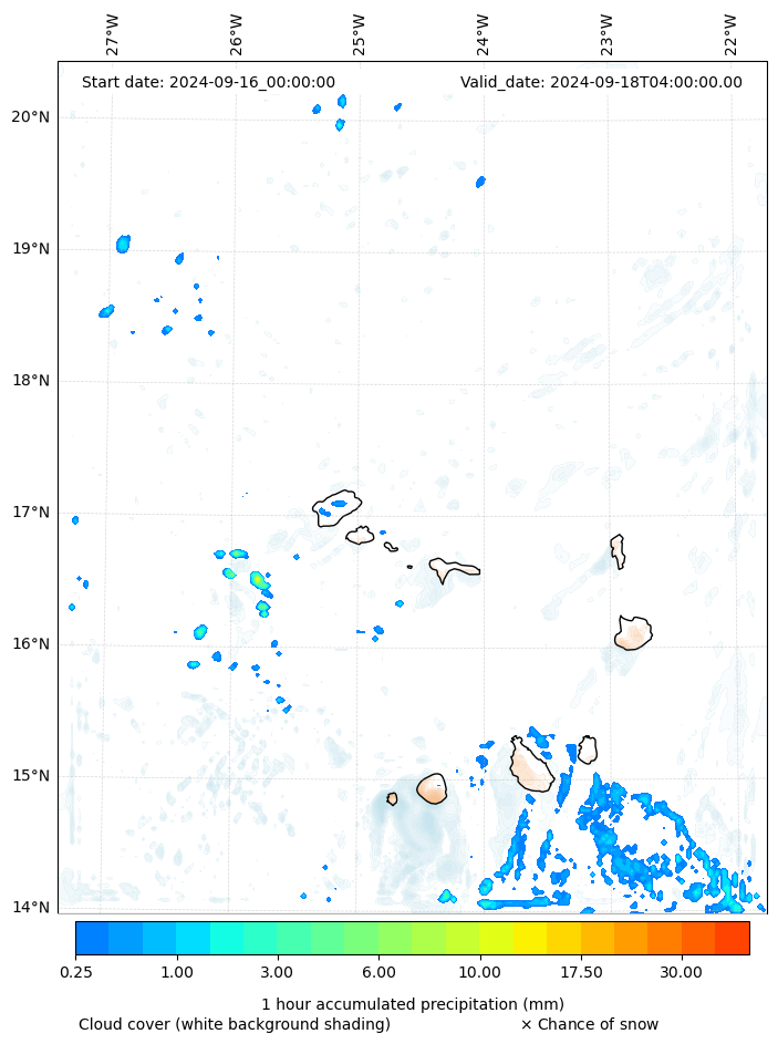 - Snow mixing ratio (g kg¯¹)