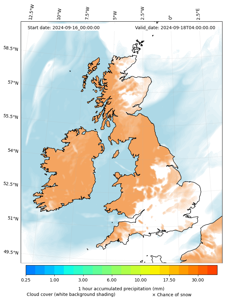 - Snow mixing ratio (g kg¯¹)