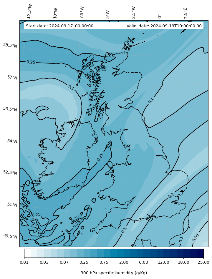 - Water vapor mixing ratio (g kg¯¹)- 300 hPa