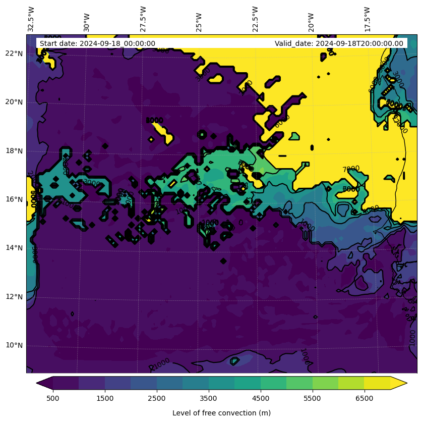 - Level of free convection (m)