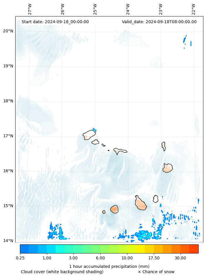 - Snow mixing ratio (g kg¯¹)