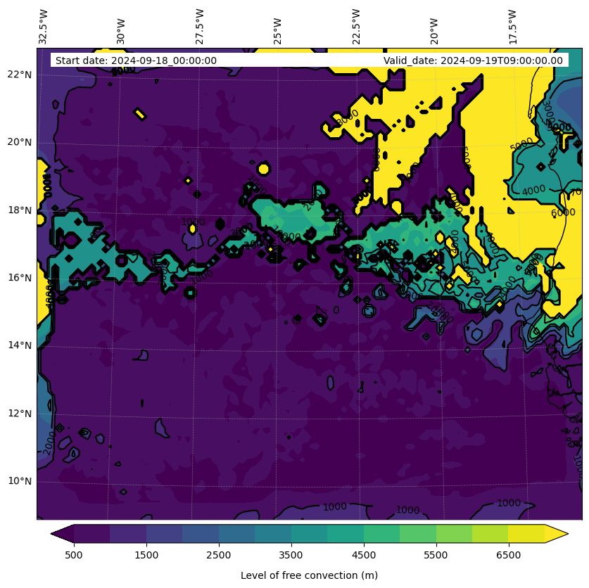 • Level of free convection (m)