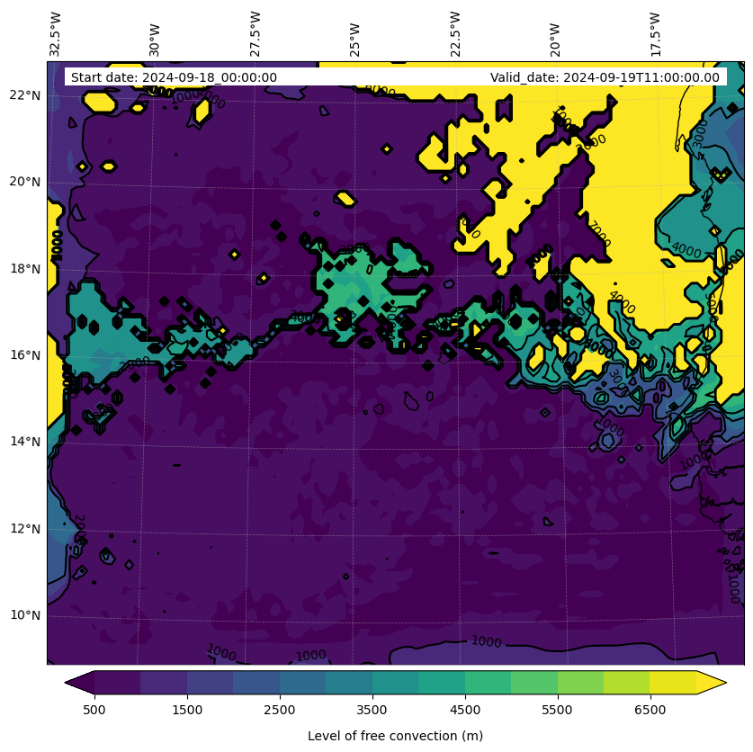 - Level of free convection (m)