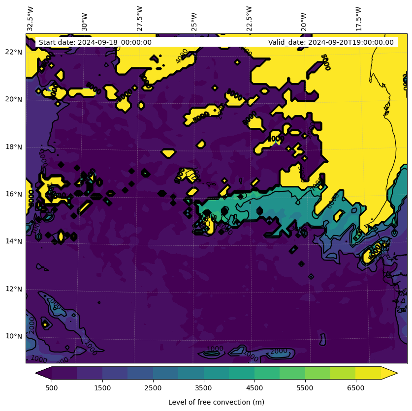 • Level of free convection (m)