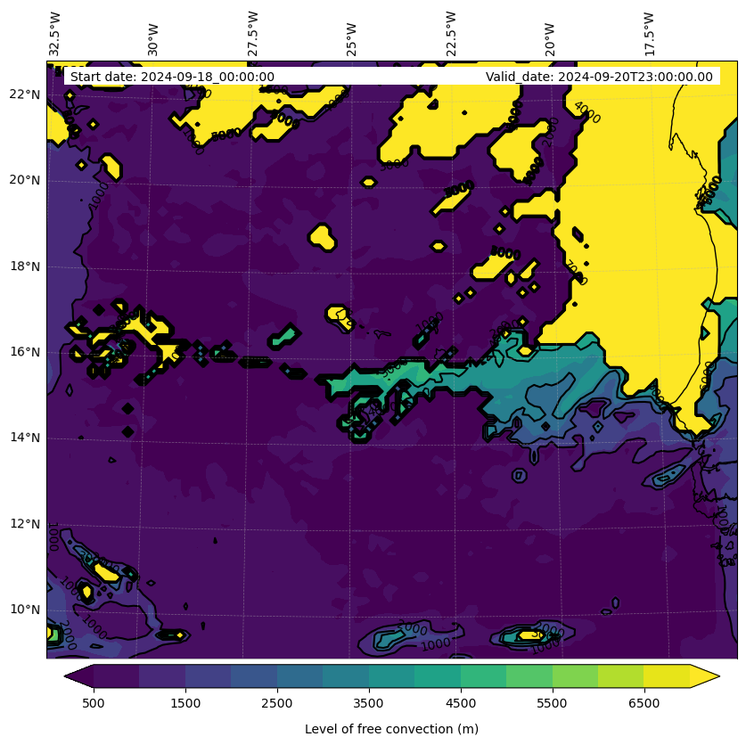 - Level of free convection (m)