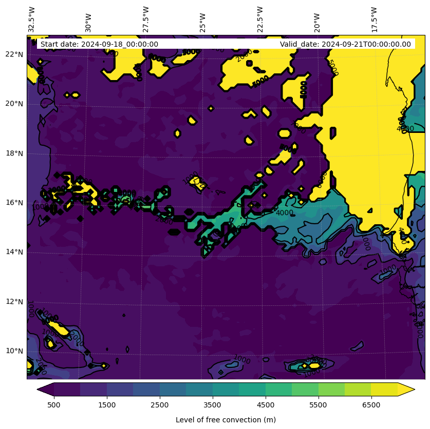 - Level of free convection (m)