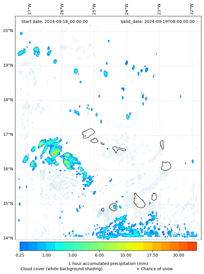 - Snow mixing ratio (g kg¯¹)