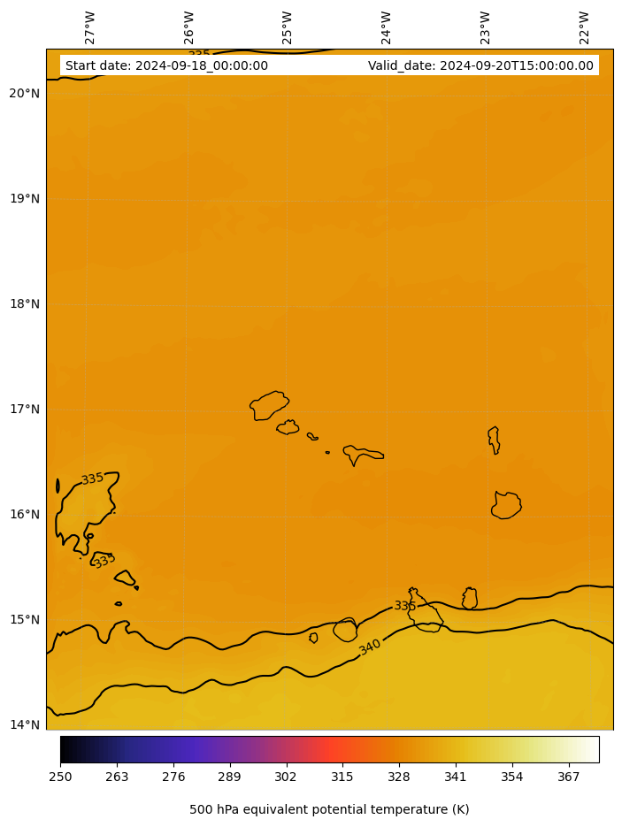 - Equivalent Potential Temperature (K)