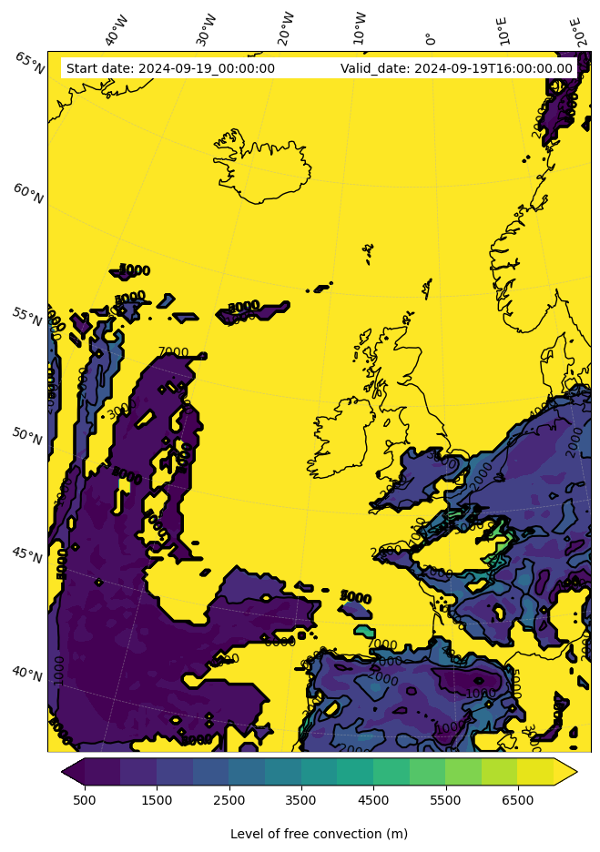 - Level of free convection (m)