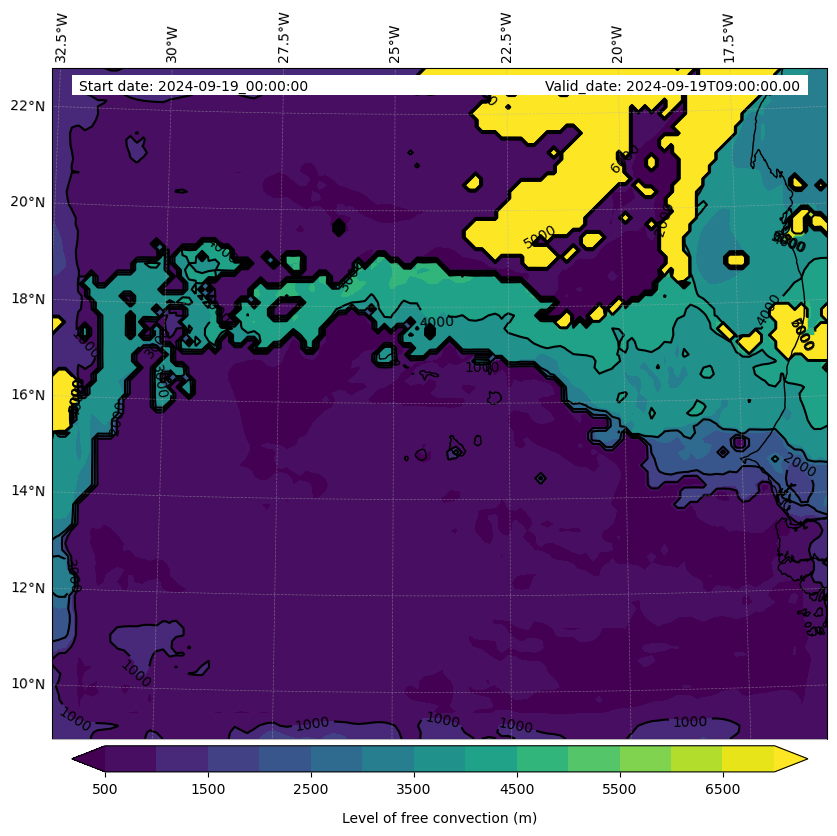 - Level of free convection (m)